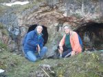 Fotografía (realizada por Fico Enterría): Pepe Monteserín con Miguel Díaz Abella en la entrada de una de las minas de cobre, en el Aramo, en la campa del Texeu, en 2009 o así.